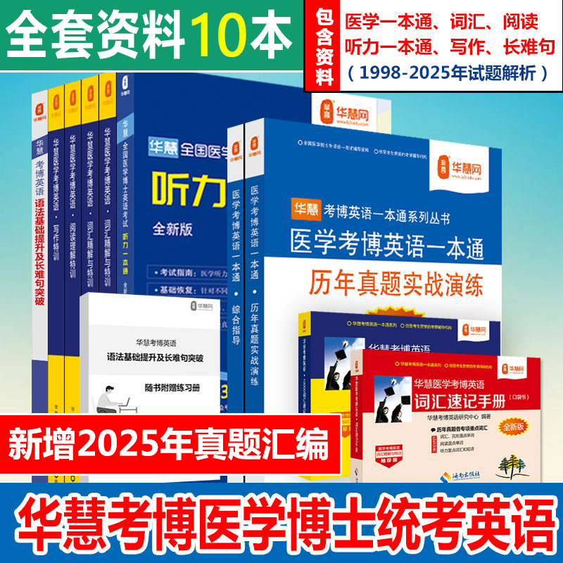 华慧医学考博英语真题/听力/词汇/阅读/写作/长难句 适用于2027年考博